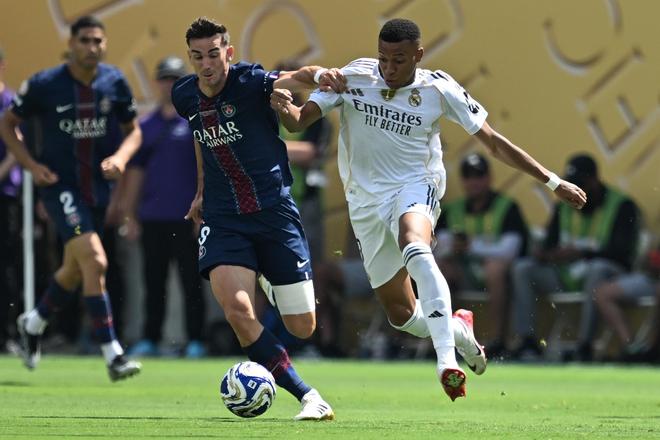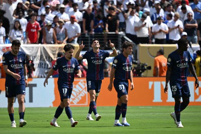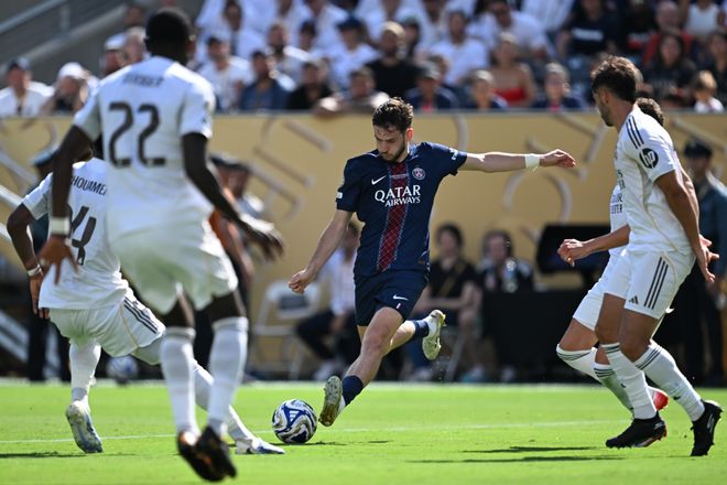 第24分鐘,登貝萊又一腳直塞打穿防線,阿什拉夫助攻魯伊斯破門,3比0……上半場(chǎng)時(shí)間剛過(guò)半,皇馬就已3球落后,被大巴黎打成了篩子,連……邁阿密國(guó)際都不如。大比分領(lǐng)先之后,大巴黎踢得更從容,貢薩洛悠閑地上演馬賽回旋,轉(zhuǎn)身抽射將比分定格為4比0。